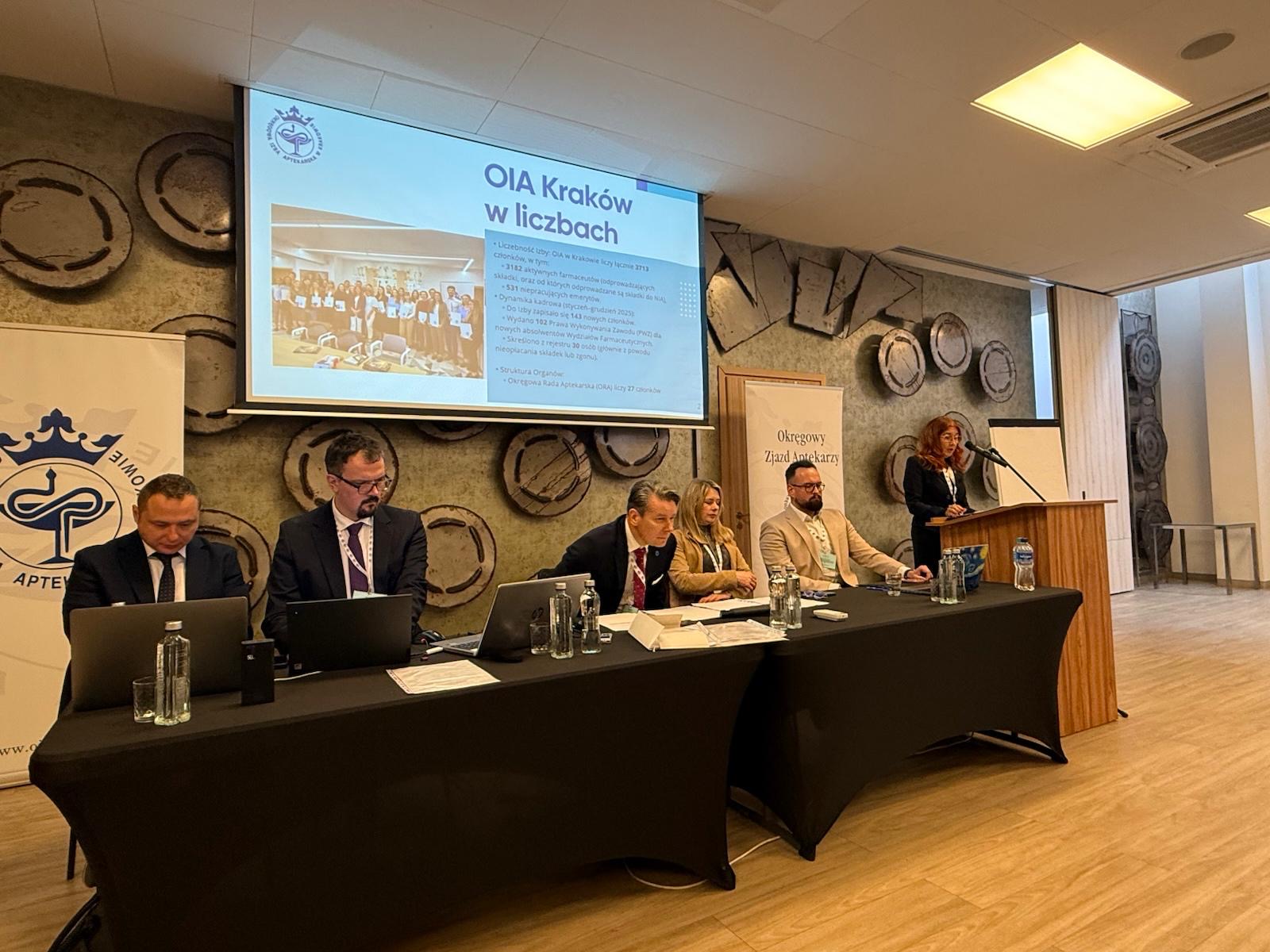 Po wybraniu prezydium zjazdu (przewodniczącym został dr n. farm. Przemysław Szybka, zastępcą przewodniczącego mgr farm. Tobiasz Migdał, a sekretarzami mgr farm. Maria Petlic-Jedynak oraz mgr farm. Tomasz Płatek) i komisji zjazdowych przedstawione zostały sprawozdania z działalności organów Okręgowej Izby Aptekarskiej w Krakowie oraz projekt budżetu na rok 2026.